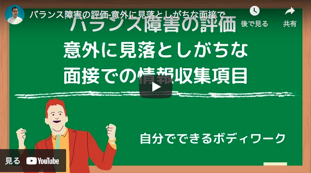 You Tube動画「バランス障害の評価-意外に見落としがちな面接での情報収集項目-」をUPしました