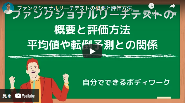 You Tube動画「ファンクショナルリーチテストの概要と評価方法、平均値や転倒予測との関係」をUPしました