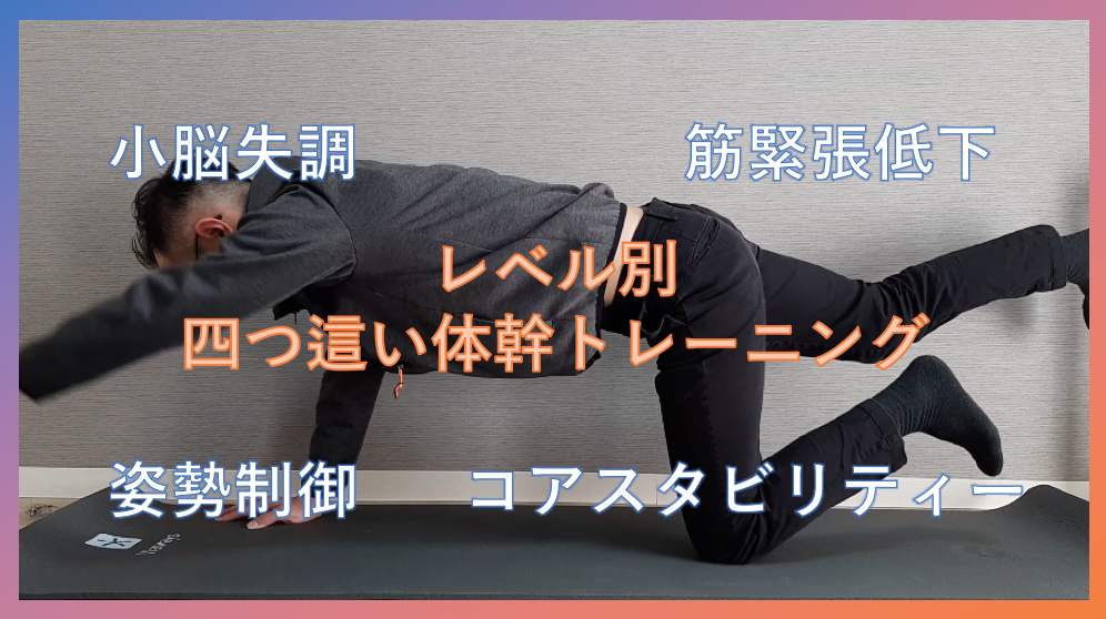 You Tube動画「見て納得!小脳失調のリハビリテーション-筋緊張低下や姿勢制御を改善するためのレベル別四つ這い体幹トレーニングの実際- 」をUPしました