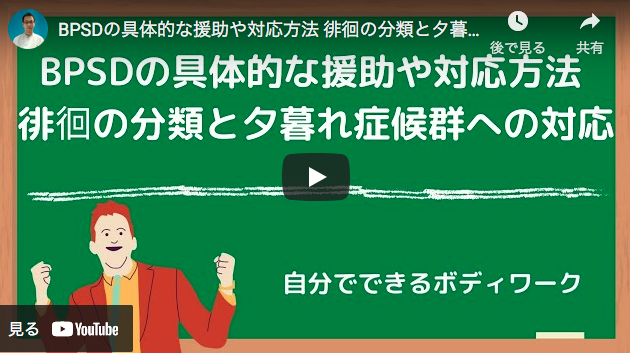 You Tube動画「BPSDの具体的な援助や対応方法-徘徊の分類と夕暮れ症候群への対応-」をUPしました