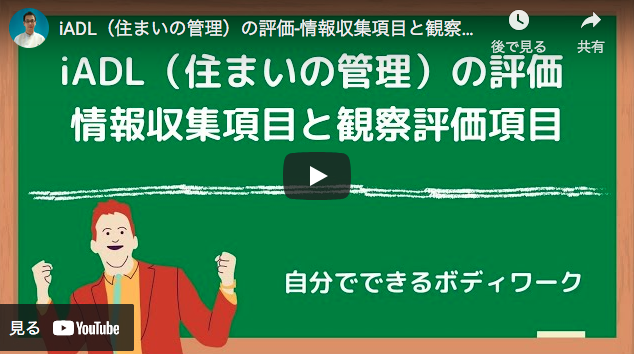 You Tube動画「iADL(住まいの管理)の評価-情報収集項目と観察評価項目-」をUPしました