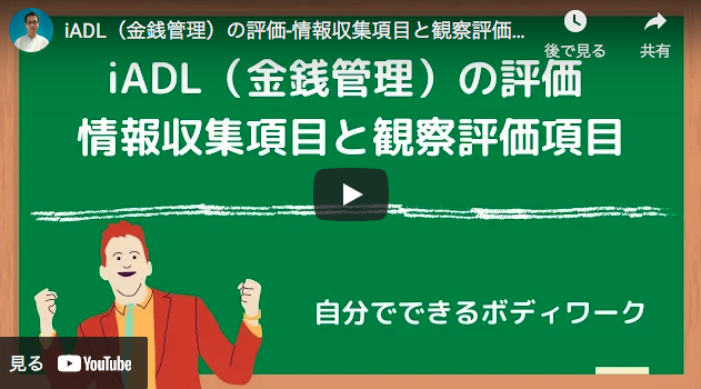 You Tube動画「iADL(金銭管理)の評価-情報収集項目と観察評価項目-」をUPしました